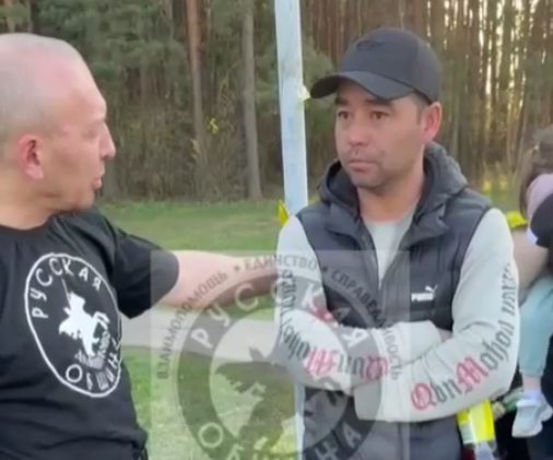Приезжий изменился в лице после того как к нему подошли товарищи из Русской Общины после того как он приставал к малолетним мальчикам.