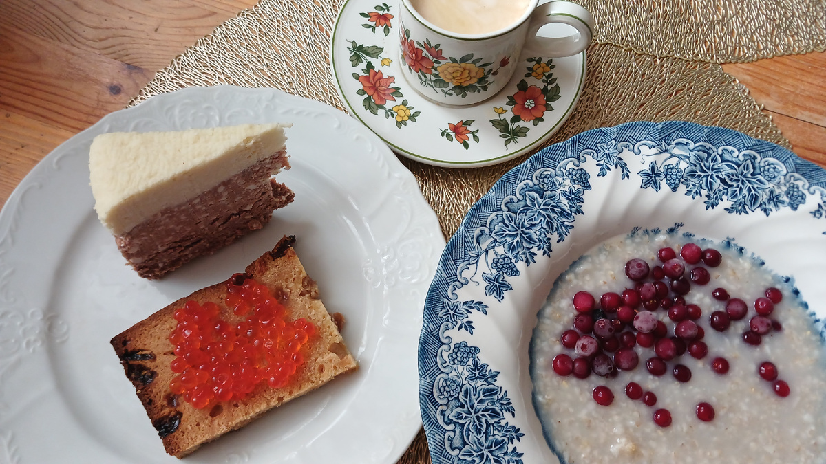 Завтрак сегодня такой же, как и вчера: овсяная каша, творожная пасха, кофе с конфеткой Еще бутерброд с икрой на куличе сделала, т.к. другого хлеба дома нет 😄 На Пасхальной неделе кулич заменяет любые виды хлеба. На обед рыбный суп с зеленым горошком, овощи и бутерброды с печеночным паштетом После обеда еще кофе попила с сыром и конфетой. Сыр "Грюйер с трюфелем" называется, покупала в Магните, очень вкусный - для любителей необычных сыров (как я😇) На ужин были фаршированные перцы, только разогрела их Меню год назад Сегодня ничего не готовила, только разогревала готовую еду.