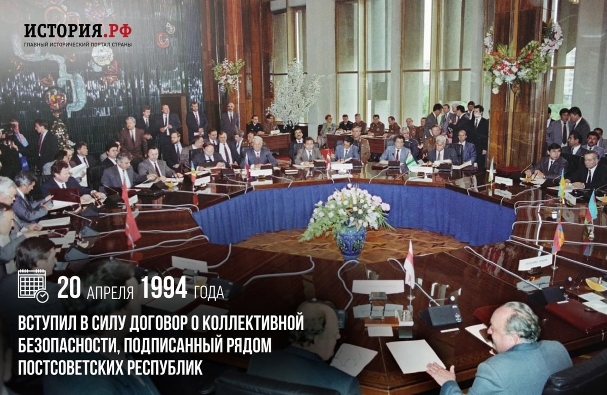 20 апреля 1994г. Вступил в силу Договор о коллективной безопасности, подписанный рядом постсоветских республик. Он был рассчитан на 5 лет и допускал продление, от которого Азербайджан, Грузия и Узбекистан отказались. В 2002 году документ стал основой для создания Организации Договора о коллективной безопасности (ОДКБ). Было расширено военно-техническое сотрудничество между участниками договора. Сейчас целями ОДКБ являются укрепление мира, международной и региональной безопасности и стабильности, защита на коллективной основе независимости, территориальной целостности и суверенитета государств-членов #ПамятныеДатыВоеннойИсторииОтечества #ДеньВИстории #ГодЗащитникаОтечества #80ЛетВеликойПобеды Источник: https://vk.com/wall-216215303_1775 Подпишитесь на наши группы ВКонтакте и в Одноклассниках - читайте, смотрите и комментируйте! Источник