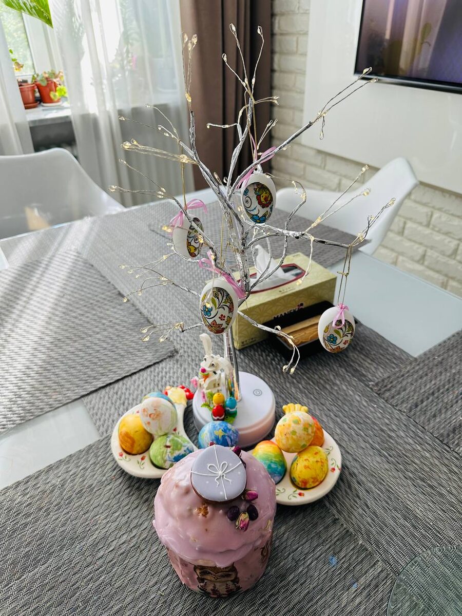 Тот случай, когда старшая доча сама раскрасила яйца, убрала на столе и красиво всё оформила, а еще помыла пол на кухне 🥰 С праздником Пасхи, дорогие друзья! 🕊️