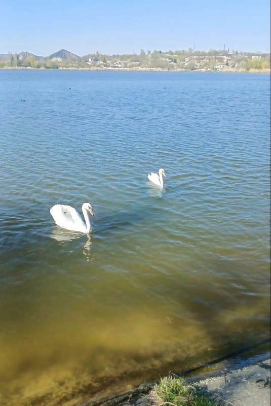 Лебеди на Алексеевском ставке в Будённовском районе Донецка