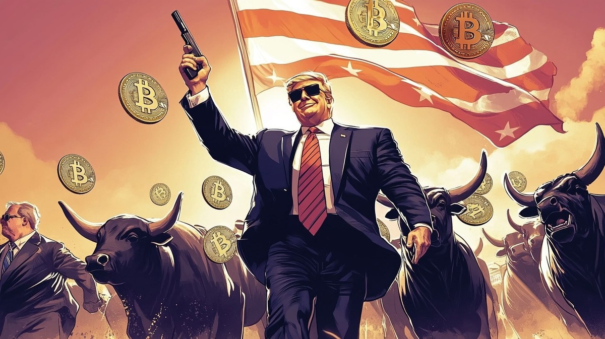 Создано на основе запроса: a group of bulls ready for the start in suits and sunglasses; the current head of the White House stands at the start, holding an American flag and pointing the starting pistol into the air; he is smiling broadly; lots of bitcoins in the air --- Автоперевод: группа быков, готовых к старту в костюмах и солнцезащитных очках; Как тебе вариант? 🤔 https://dzen.ru/id/65c0c65c86e4f837c27b24d7 #ИИ #AI #нейросеть #midjourney #art