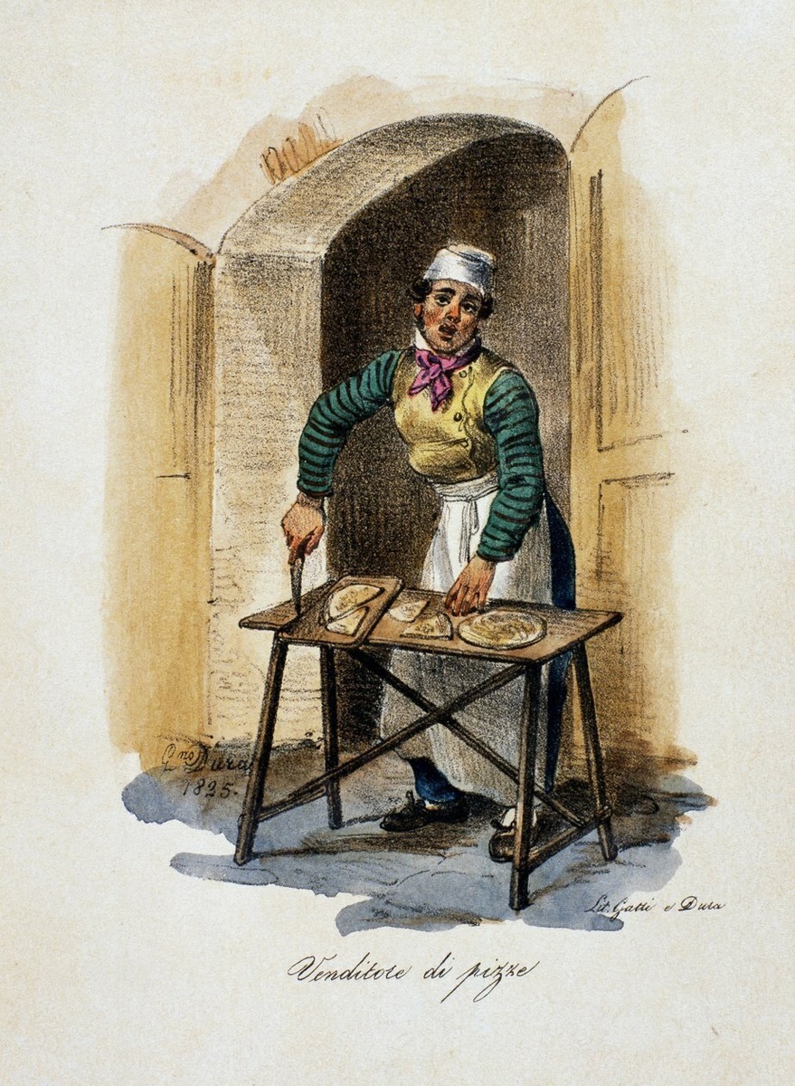 Сегодня пиццерии – это уютные заведения, но ещё 100 лет назад пиццу ели только стоя! Она считалась дешёвым фастфудом для рабочих: её покупали у уличных торговцев или в крошечных лавках без стулье