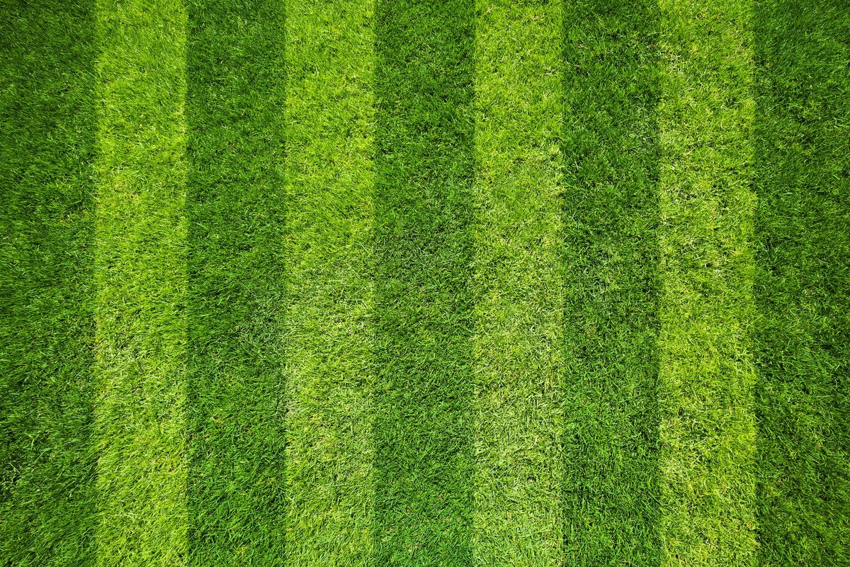 Разный цвет газона получается, когда солнце светит на травинки. Если косить газон по линиям в разных направлениях, то травинки, сдвинутые в разные стороны при стрижке, будут давать такой эффект.