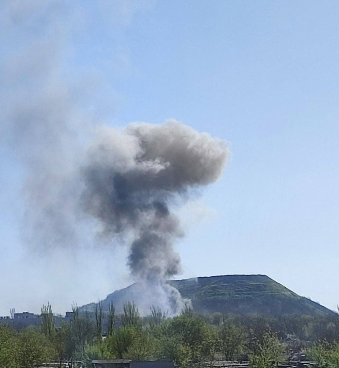 А пока на дворе одностороннее перемирие, объявленное Верховным и еще вчера занесенное в соответствующий журнал. При этом мало кто сомневался и питал иллюзии, что противная сторона будет Пасхальное перемирие соблюдать. Включая и нашего президента. Причина исключительно и только политическая – показать на конкретном примере, что К.Хунта недоговороспособна – её можно и нужно уконтропупить. За доказательствами далеко ходить нет нужды – на фото многим знакомый старый террикон в Донецке и выхлоп очередного удара пр-ка сегодня утром. Горловка тоже получила с утра 4 155-мм снаряда. Тот факт, что сходу отказавшийся от перемирия Кл-Рез. через 3 часа на него согласился и даже ожидаемо предложил продлить его на месяц не менее предсказуем – Хунте нужна передышка. Но чем бы не руководствовался пр-к, после полуночи огонь начал стихать. В Курской области это даже ожидаемо – вояк Хунты выбили из Олешни, а в последнем селе – Горнали – выбили из монастыря и преобладающих высот – так что затишье дает им