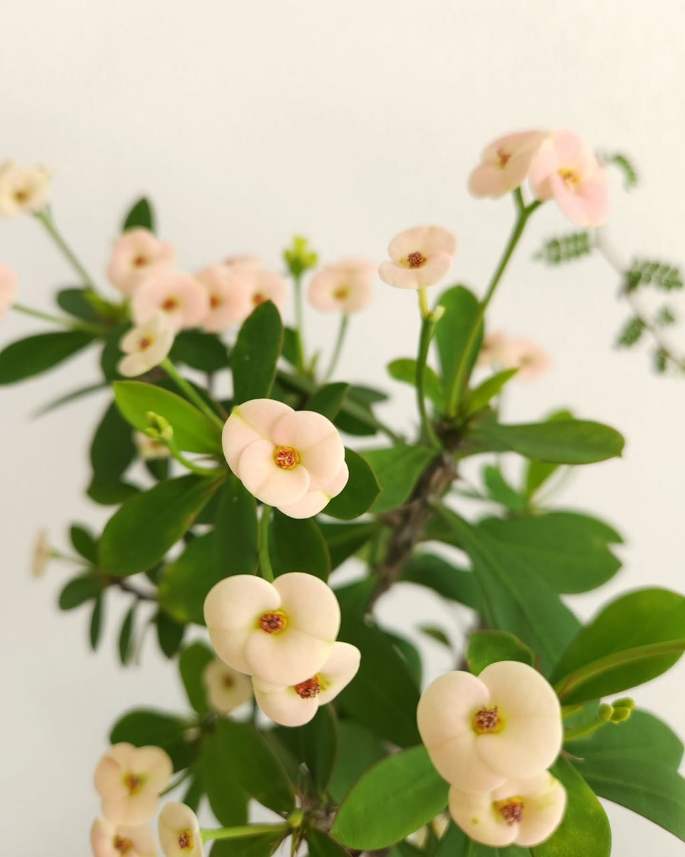 🌸 Молочай Миля (эуфорбия Миля), также известный как "терновый венец", — это популярное комнатное растение, принадлежащее к семейству Молочайные. Своё название он получил в честь барона Миля, который привёз это растение во Францию в XIX веке. Молочай Миля ценится за свои яркие прицветники, которые окружают мелкие цветки, и за неприхотливость в уходе. Это растение станет эффектным украшением любого интерьера. Освещение: Молочай Миля любит яркий свет, утреннее/ вечернее солнце. Лучше всего размещать его на восточных или западных окнах. Полив: Поливать нужно умеренно, давая почве просыхать между поливами. Почва: Подходит лёгкая, хорошо дренированная почва. Подкормка: В период активного роста (весной и летом) растение можно подкармливать удобрениями для кактусов или суккулентов раз в 2–3 недели.
