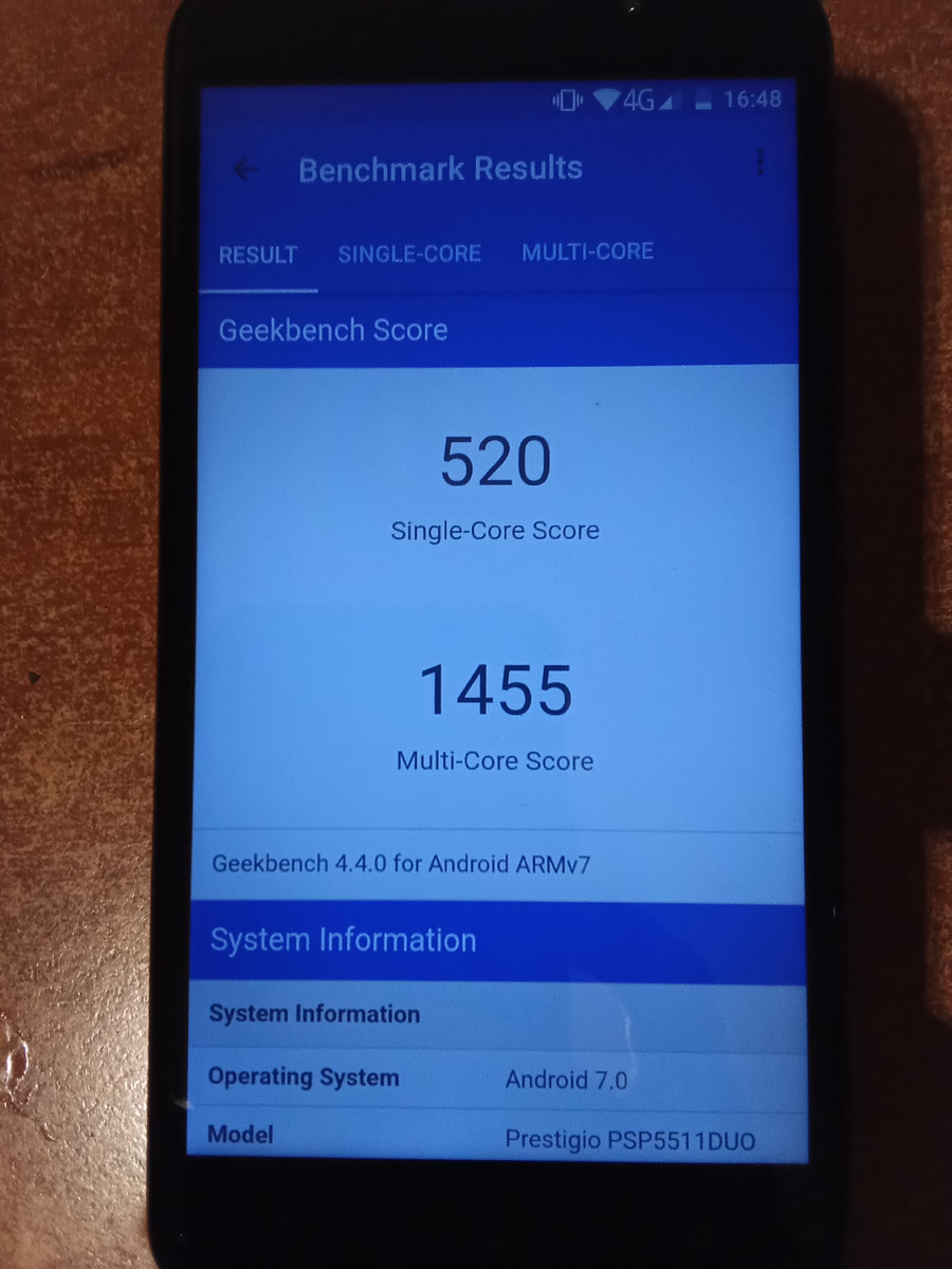 Geekbench 4 - это программа, изменяющая скорость работы процессора смартфона. Смартфон среднего или бюджетного класса должен набирать по меньшей мере 1400 баллов в многоядерной и 500 баллов в одноядерном тесте. Такой производительности хватит на посидеть в ВК и загуглить информацию. Смартфоны среднего и высшего класса должны набирать более 2000 в многоядерном и более 600 в одноядерном тесте. На этом всё.