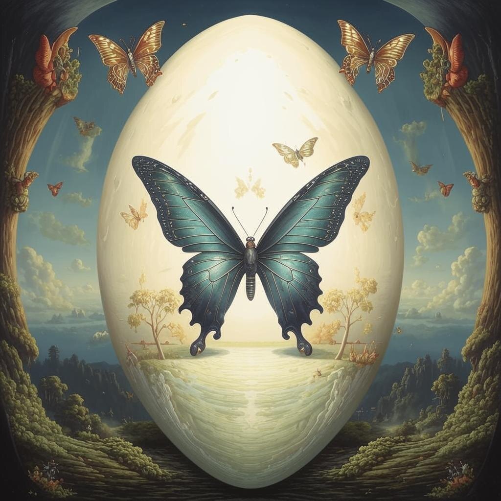Яйцо — хрупкая метафора человеческой психики. Его скорлупа, украшенная узорами совершенства, напоминает Эго — защитный слой, за которым мы прячем уязвимость, страхи, подавленные желания. Но трещина, внезапно прорезающая гладкую поверхность, — не катастрофа, а начало трансформации души🐦🔥 Это момент кризиса, когда рушится иллюзия контроля, и вытесненное содержание (желток травм, невысказанных эмоций, забытых мечтаний) прорывается в Сознание.