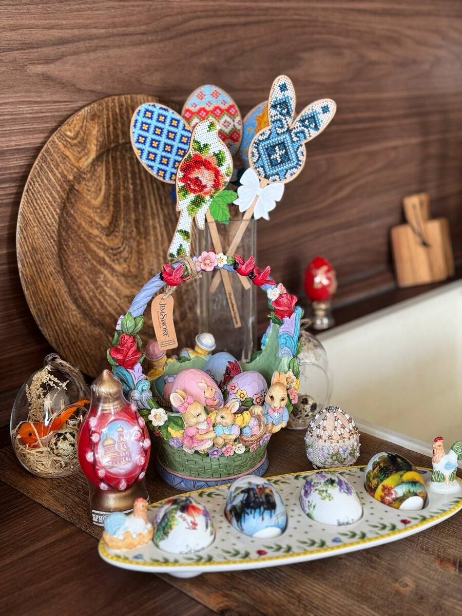 Поздравляю всех православных со светлым праздником - ПАСХОЙ! От всей души желаю благополучия, процветания и гармонии вашему дому! Обязательно веры, надежды, любви и мира! Пасха — главный праздник, объединяющий всю церковь! Один из древнейших для христианства, который берет свое начало еще в Ветхом Завете. Моя пасхальная композиция в этом году выглядит так ярко — глаз не могу отвести. Тут и чудесная корзинка от Jim Shore, разноцветная, живописная! И красивая тарелочка от Villeroy & Boch, лодочка-подставка “петушок и курочка”)) И вышитое яичко от Риолис! Мария Магдалина преподнесла императору яйцо, символизирующее смысл жизни, и сказала, что Христос воскрес. Она стала первой, кто обратился к нему с этой пасхальной фразой, которую мы слышим до сих пор. Император не поверил в чудо воскресения человека и заметил, что он больше верит в то, что яйцо сможет покраснеть, нежели в возможность воскрешения. И именно в этот момент белое яйцо преобразилось и стало красным прямо на его глазах, что