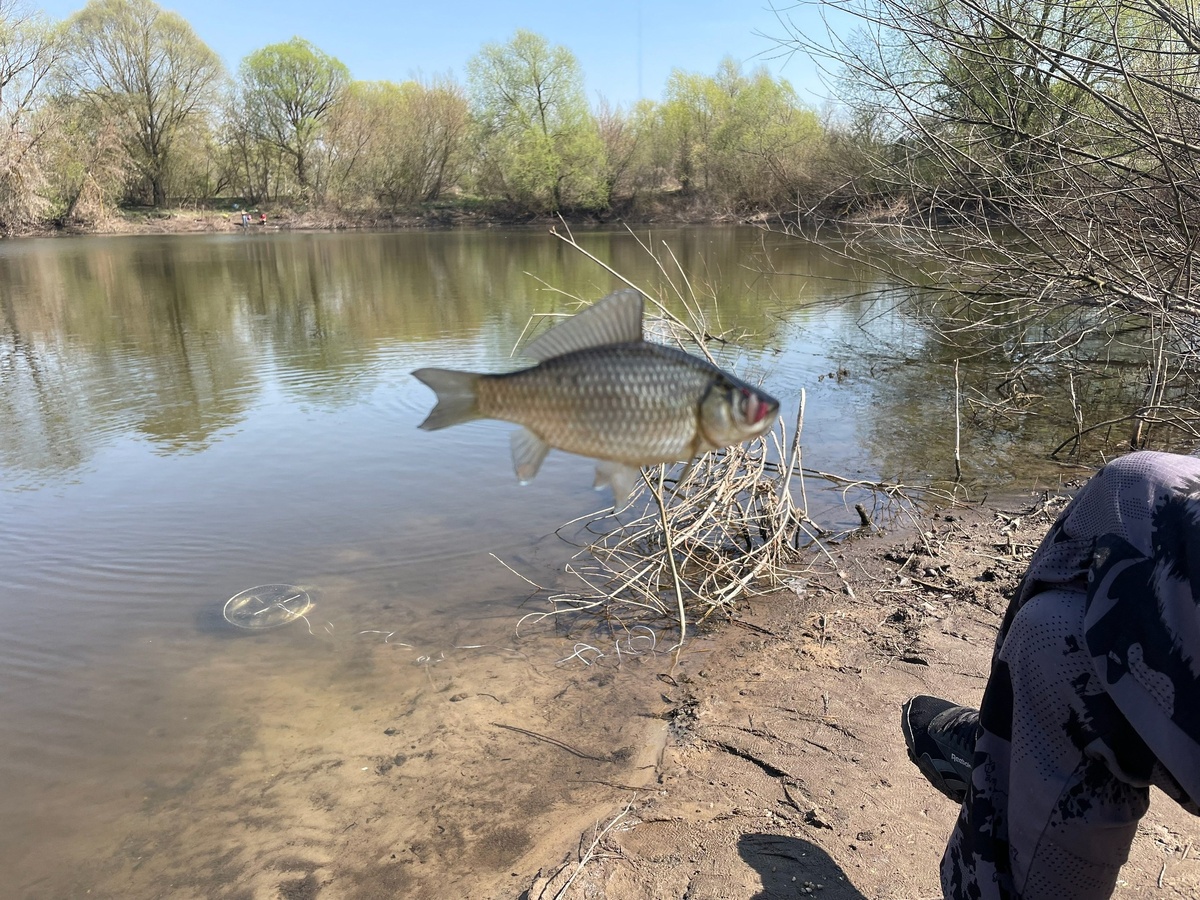 Ездили проверить водоем, клевал как из пулемета ладошечный карасик, самых больших взял на таранку, остальных переселил в другой водоем Источник