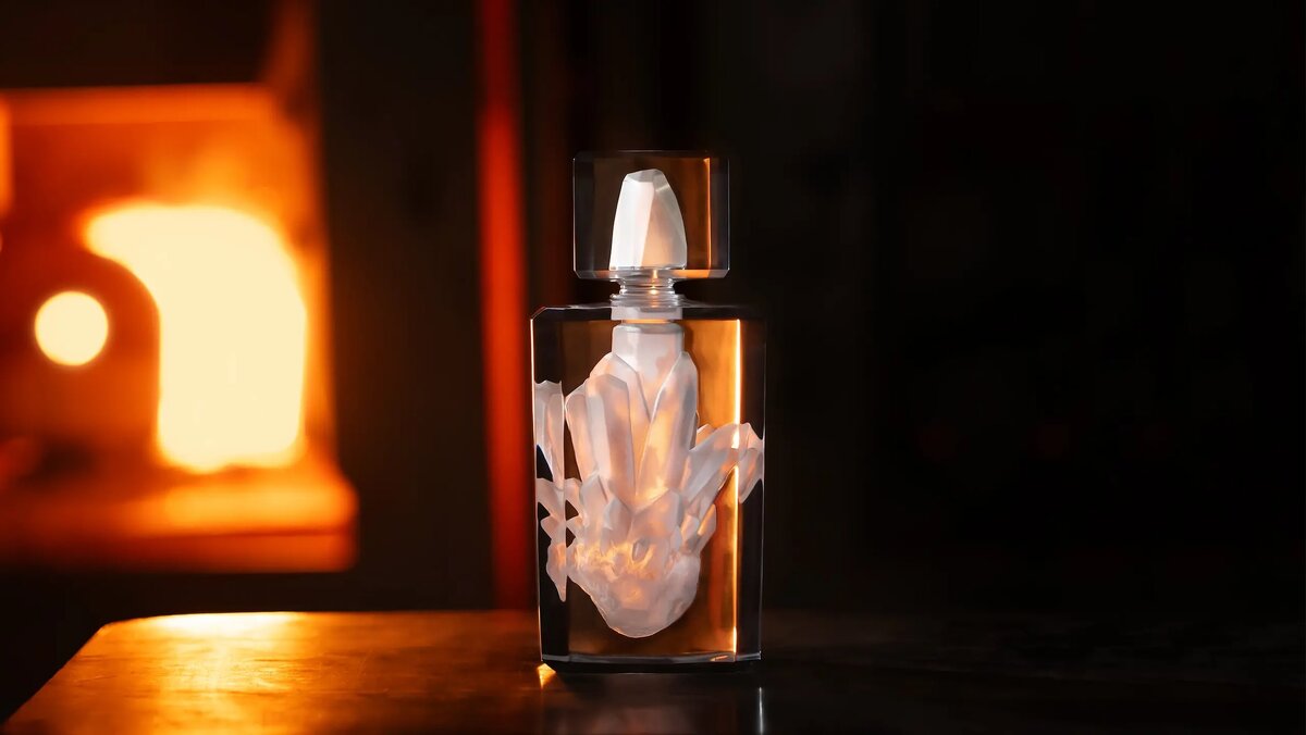 Напоминающие ледник грани преломляют свет с завораживающим блеском, а серебристый оттенок парфюмерной эссенции еще больше усиливает эффект. Прозрачный и светящийся алебастровый футляр может трансформироваться в эффектный постамент, напоминающий римскую колонну, создавая художественную инсталляцию, которая излучает творческое самовыражение и непреходящую изысканность.