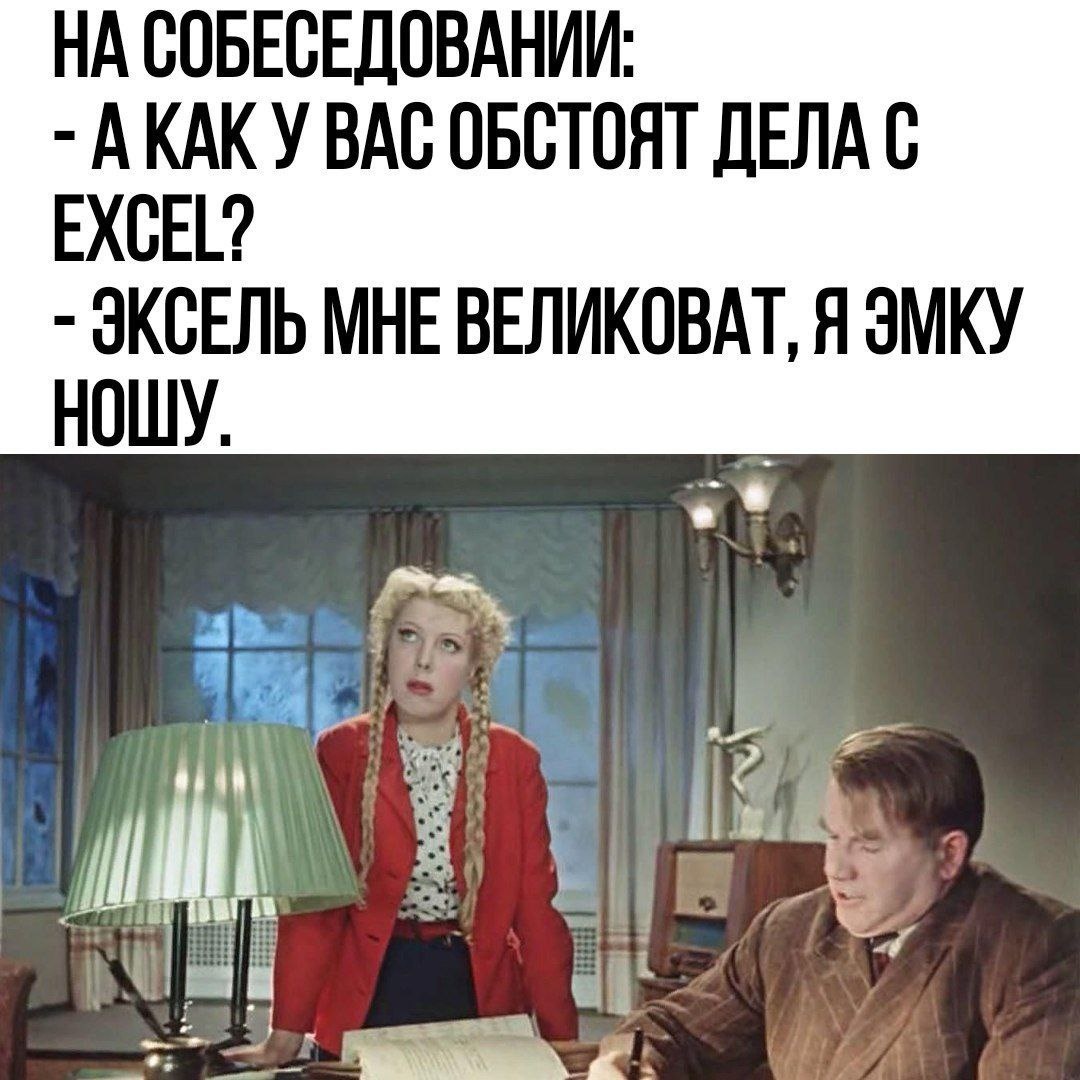 Любимые ученики прислали 😂😂😂 А какой у вас уровень владения Excel? (Только честно 😅) Оказывается бывает 4 уровня. 💚 Базовый: форматировать ячейки (выравнивать содержимое, менять цвет и шрифт; писать простые формулы для выполнения математических операций; сортировать и фильтровать данные; создавать простые диаграммы; использовать элементарные функции вроде СУММА, СЧЁТ, СРЗНАЧ, СУММЕСЛИ, СЧЁТЕСЛИ. 💚 Средний: применять Мастер функций; создавать сводные таблицы; использовать инструмент быстрого анализа данных; создавать мини-диаграммы для визуализации данных; пользоваться условным форматированием. 💚 Экспертный: находить одно из значений в таблице или получать информацию из столбца при помощи функции ВПР; извлекать данные из внешних источников в свою электронную таблицу с помощью надстройки PowerPivot; импортировать или подключать внешние данные, чтобы придать им форму и загрузить в Excel; извлекать соответствующее значение из другой ячейки при помощи функции «Индекс со сравнен