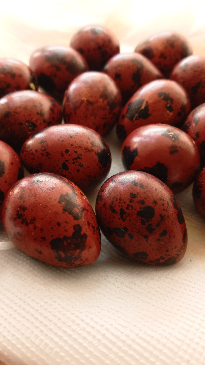 Однажды во время обеда на работе мы заговорили о подготовке к Пасхе, и одна из сотрудниц поделилась своим секретом покраски перепелиных яиц. Мне стало интересно, и я решила попробовать этот способ. И так, начнем! За ранее я подготовила луковую шелуху . Для начала, сырые перепелиные яйца мы перекладываем шелухой от лука . Можно так сказать слоями . Заливаю холодной водой и убираю в холодильник на ночь . На следующий день , ставлю их вариться как обычные яйца . После , снимаю с огня достаю их и остужаю .