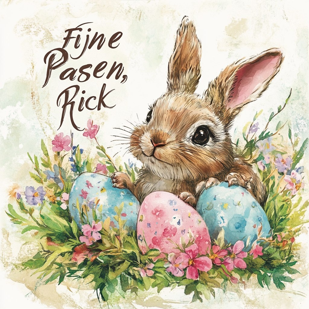 Создано на основе запроса: Make a beautiful Easter card with the inscription "Fijne Pasen, Rick