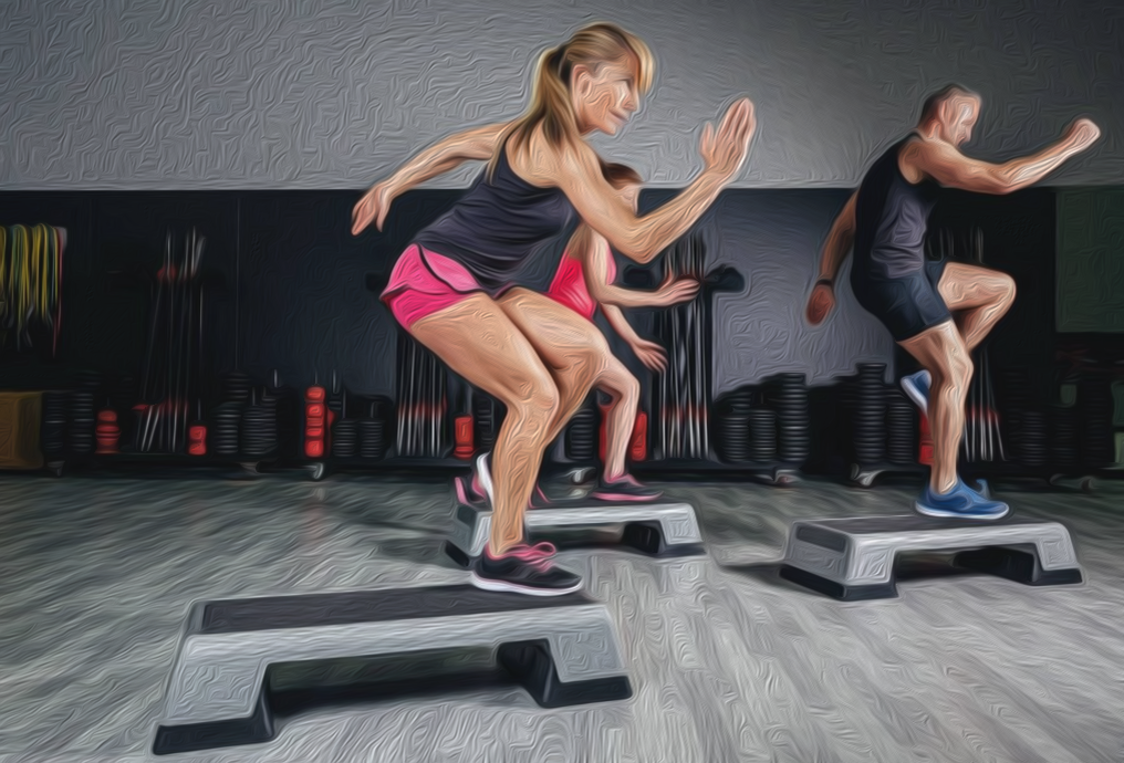 Эффект: сжигает калории, заряжает энергией. Бежим на месте 4 шага, затем два прыжка с руками вверх.