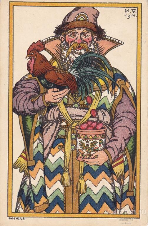 "Пасхальный дед" — одна из самых популярных пасхальных открыток XX, созданных художником-графиком Иваном Яковлевичем Билибиным. На ней мы видим колоритного старика, одетого в расшитый народный костюм, с длинной бородой и запоминающимся взглядом. Он словно сошел со страниц русских сказок, олицетворяя собой мудрость и связь поколений. В руках дед держит раскрашенные пасхальные яйца, символ возрождения и новой жизни. В руках у него петух. Яркие цвета и детализированные узоры костюма создают атмосферу праздника и весеннего обновления. Билибин мастерски использует элементы народного орнамента и стилистики, характерные для его иллюстраций к русским народным сказкам и былинам. В «Пасхальном деде» он воплощает дух русской традиции и веры, напоминая о важности сохранения культурного наследия и передачи его будущим поколениям. Эта открытка – не просто поздравление с Пасхой, а маленькое произведение искусства, наполненное любовью к родной земле и ее обычаям. Нужно отметить, что это была очен