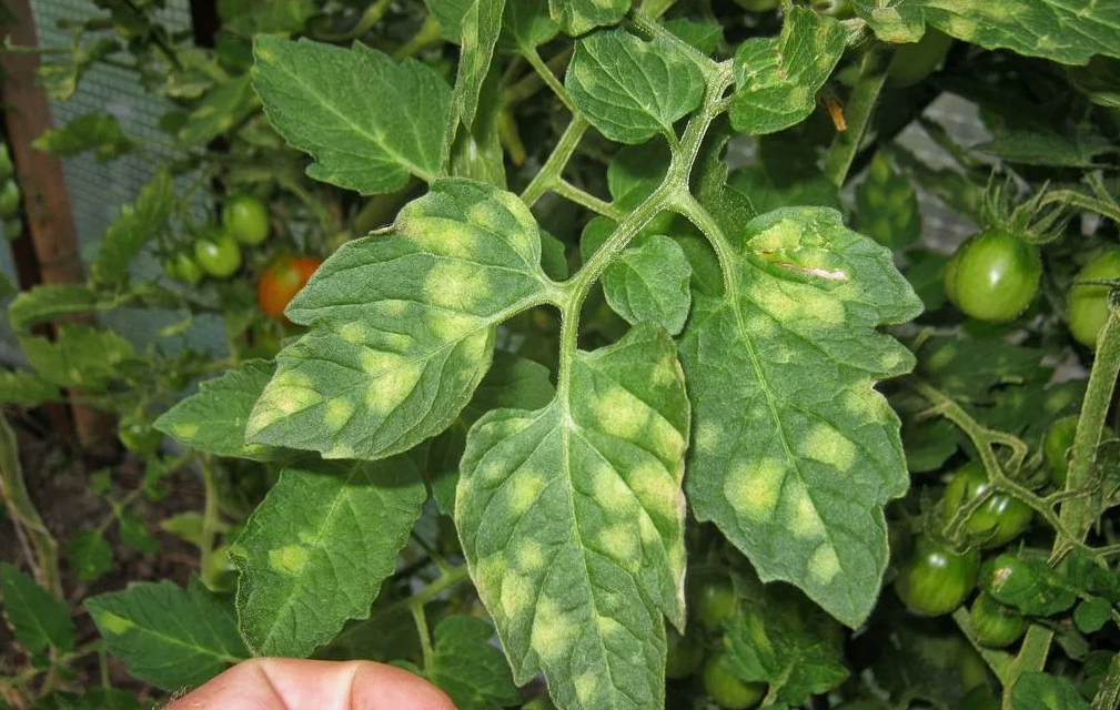Если на листьях появились пятна, серый налёт, а сами они стали пятнисто-жёлтыми — скорее всего, речь о фитофторе. Ещё бывает фузариоз — там желтизна полосами идёт, и куст «увядает», несмотря на полив и подкормки.