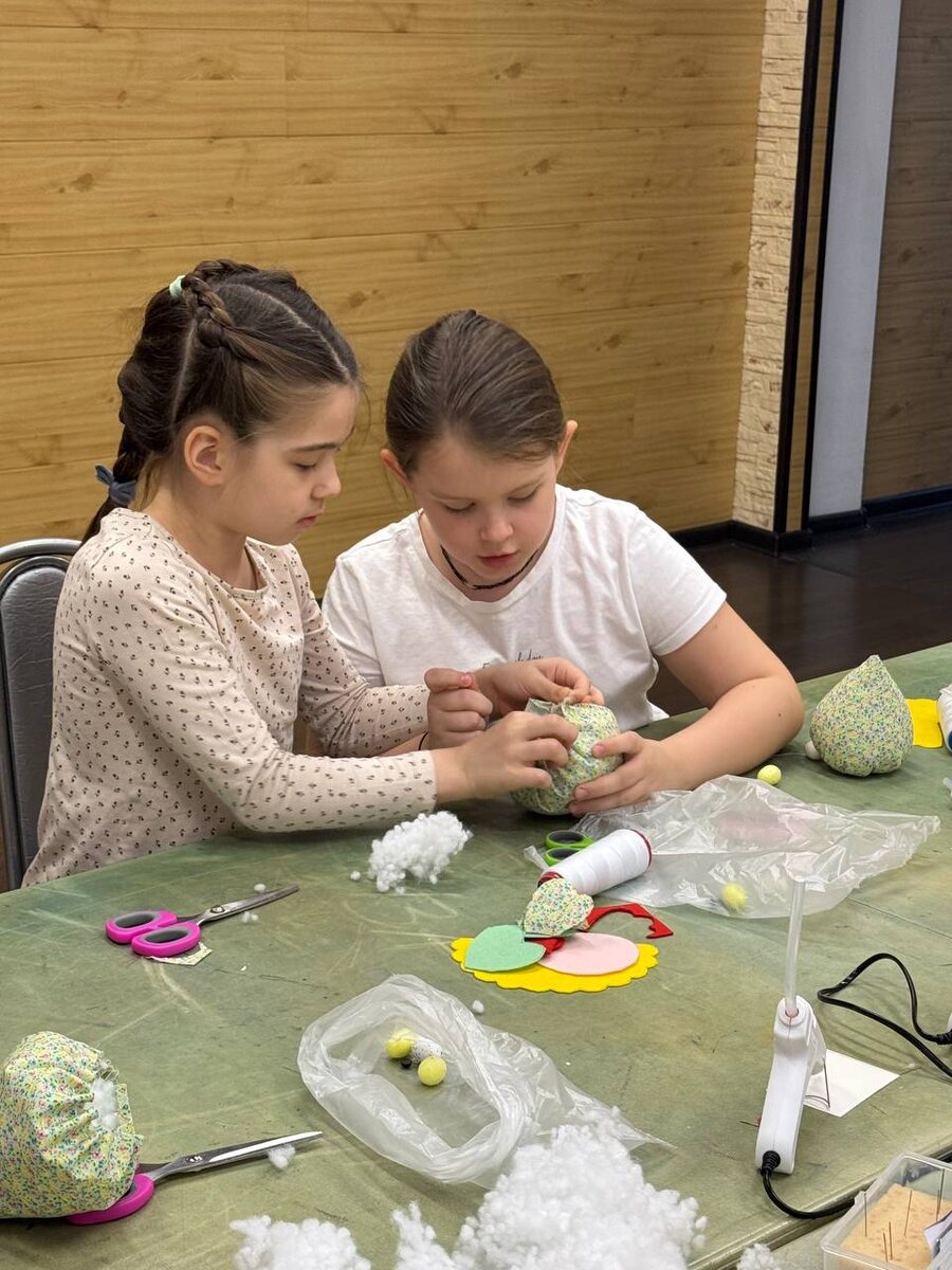 Вчера в нашем арт-центре «Колибри» прошел мастер-класс по созданию игрушки-курочки, посвященный празднику Пасхи 🐣 Дети шили, клеили и вырезали, проявляя свою творческую фантазию, под чутким руководством преподавателя. Каждый ребенок создал уникальную курочку, используя яркие ткани и различные декоративные элементы. В конце мастер-класса каждый унес домой не только красивую игрушку, но и частичку пасхального настроения 💛