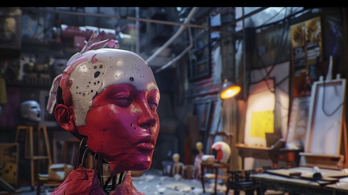 Создано на основе запроса: Artists protesting against artificial intelligence dolls, surreal scene, expressive painters and sculptors, broken hyper-realistic AI dolls, dramatic lighting, urban studio environment, emotional tension, renaissance and cyberpunk fusion, cinematic style, 8k resolution, photorealistic --- Автоперевод: Художники протестуют против куклов искусственного интеллекта, сюрреалистической сцены, выразительных художников и скульпторов, сломанных гиперреалистичных кукол AI, драматического освещения, городской студийной среды, эмоционального напряжения, эпохи Возрождения и киберпанка, кинематографического стиля, разрешения 8K, фотореалистично Что думаешь? 🤔 https://dzen.ru/id/65c0c65c86e4f837c27b24d7 #ИИ #AI #нейросеть #midjourney #art