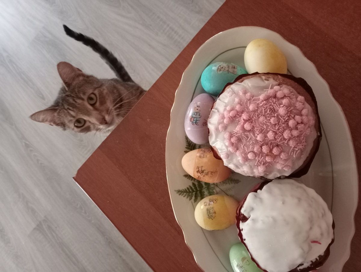 Мы с семейством поздравляем вас, мои замечательные читатели, со светлым праздником Пасхи! И пусть в ваших душах и во всем мире свет и добро всегда побеждают тьму и зло, а любовь всегда оказывается сильнее ненависти! Ведь свет, добро и любовь — это жизнь. И пока они побеждают — мир будет продолжать существовать, а мы все с вами просто жить. Сегодня мы с семейством почти до утра наводили дома порядок (чтобы он хотя бы половину праздничного дня продержался) и красили яйца. И когда уже всё закончили, я красиво выложила куличи и яйца на блюдо, пришел наш главный эстет и любитель идеальной красоты — Басти. Она долго рассматривала композицию, склоняя голову то на одну, то на другую сторону, заставила меня поменять местами несколько яиц, сказав, что так они будут смотреться красивше, а потом вздохнула, прищурилась и заявила: - В следующий раз, Ма, я сама буду выбирать картинки для яиц. А то ты в этом году совсем неправильные выбрала! Я устало бросила взгляд на разноцветные яйца с зайчиками, н