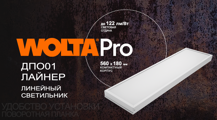 Российская профессиональная линейка светотехнической продукции WOLTA®PRO представляет новую серию светодиодных светильников ДПО01 ЛАЙНЕР. Эти устройства с размерами 560х180х40 мм и мощностью 18 Вт стали настоящим прорывом в области освещения. Они идеально подходят для использования в офисах, торговых залах, медицинских учреждениях и учебных аудиториях, обеспечивая равномерное и комфортное освещение. Светильники ДПО01 ЛАЙНЕР разработаны с учетом потребностей современных помещений, где важна функциональность и эстетика. Их легко интегрировать в потолки типа «Армстронг», что делает их популярным выбором для офисных и коммерческих пространств. Кроме того, возможен накладной или подвесной монтаж, что расширяет сферу их применения. Для удобства установки на корпусе предусмотрена поворотная планка, которая позволяет быстро и просто подключить устройство без использования дополнительных инструментов. Это значительно упрощает процесс монтажа и обслуживания. Корпус светильников изготовлен из выс
