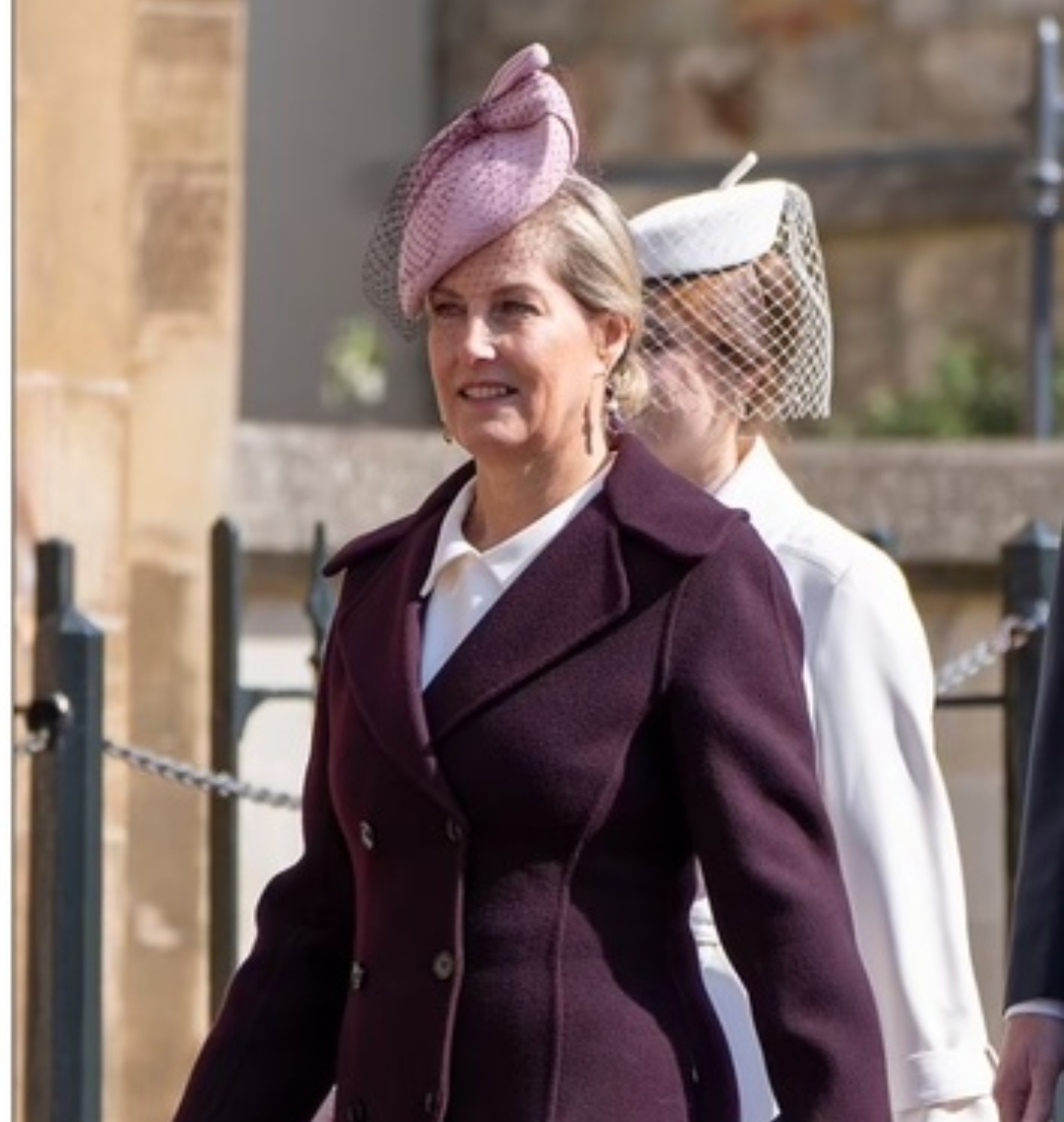Герцогиня Эдинбургская вышла в стильном бордовом наряде вместе со своей семьёй на королевскую пасхальную церковную службу в воскресенье. 60-летняя Софи, казалось, наслаждалась солнечным светом в пасхальное воскресенье, прогуливаясь со своим 61-летним мужем принцем Эдвардом и 17-летним сыном Джеймсом графом Уэссекским перед пасхальной утренней службой в часовне Святого Георгия в Виндзоре, Беркшир. Мать двоих детей, которая становится всё более значимой фигурой в королевской семье, выглядела элегантно в сшитом на заказ двубортном пальто сливового цвета, которое стильно расширялось к низу, а под ним было белоснежное платье с воротником. Она дополнила этот яркий наряд фиолетовой сумкой-клатчем, розовым шарфом и блестящими туфлями на шпильке телесного цвета. Герцог Эдинбургский выглядел элегантно в сером костюме с коричневым галстуком в клетку и беседовал со своим младшим сыном Джеймсом, графом Уэссекским, пока семья направлялась на рождественскую службу. Подросток, который выше об
