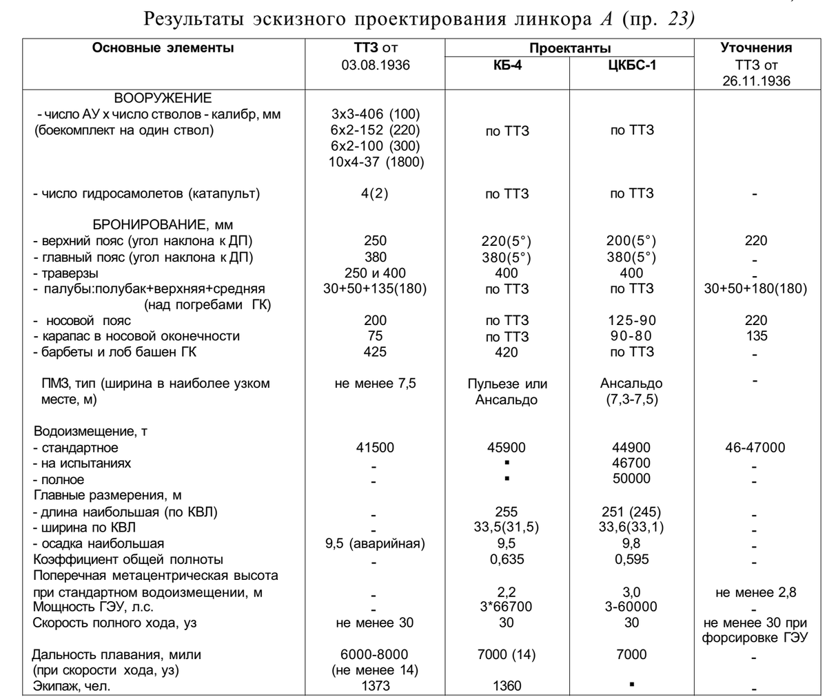 Во-первых выяснилось, что в связи с принятым решением об увеличении водоизмещения линкоров типа А с 45000-47000 до 55000 т запроектированные