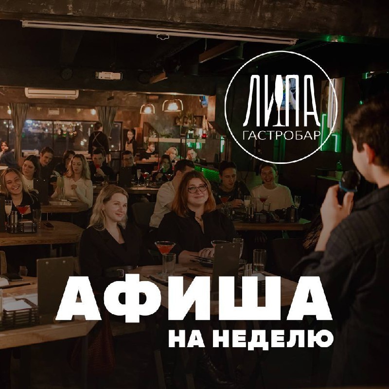 Афиша на неделю 21.04–27.04: 21.04.(пн) - Акция: "3 коктейля по цене 2" 22.04.(вт) - Акция "Все настойки удваиваются" Двойная порция любимых вкусов по цене одной! 23.04.(ср) - "Любовь, вино, сыр" При заказе винного сета действует скидка в 20% на всю винную карту 24.04.(чт) - Stand Up 🕕19:30 Вход: 400₽. Бронь столов: 89170280408 25.04.(пт) - дегустация коктейлей «Джин и вишня» 🕕20:00 4 коктейля - 1000 рублей Бронь столов: +79962044949 26.04.(сб): дегустация коктейлей «Джин и вишня» 🕕20:00 4 коктейля - 1000 рублей Бронь столов: +79962044949 27.04(вскр): гештальт-шоу «Проблемки и вопросики» 🕕19:00 Вход: 600₽ Бронь столов: +7-908-547-76-94