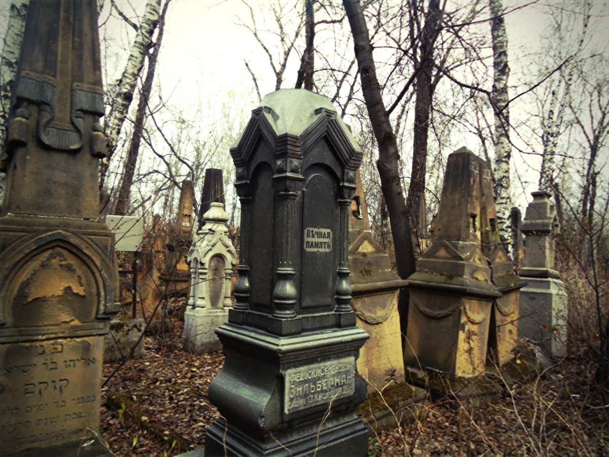 Мы сегодня пойдём в ту часть, которая огорожена оградой из песчанника. Точно помню, что ставил её ещё купец Файнберг, когда похоронил здесь сына... Помню, что мы раз прибирались у себя, а потом увидели сторожа и напросились на еврейское кладбище. Да, напомню, что евреи куда практичнее поступают, чем мы, православные, ибо они не тревожат своих мёртвых, носят им не груды пластиковых цветов (сейчас, конечно, всё смешалось уже), а камни. Очень практично! - мне, как человеку, ухаживающего за десятком могил, это кажется черезвычайно разумным, если честно...