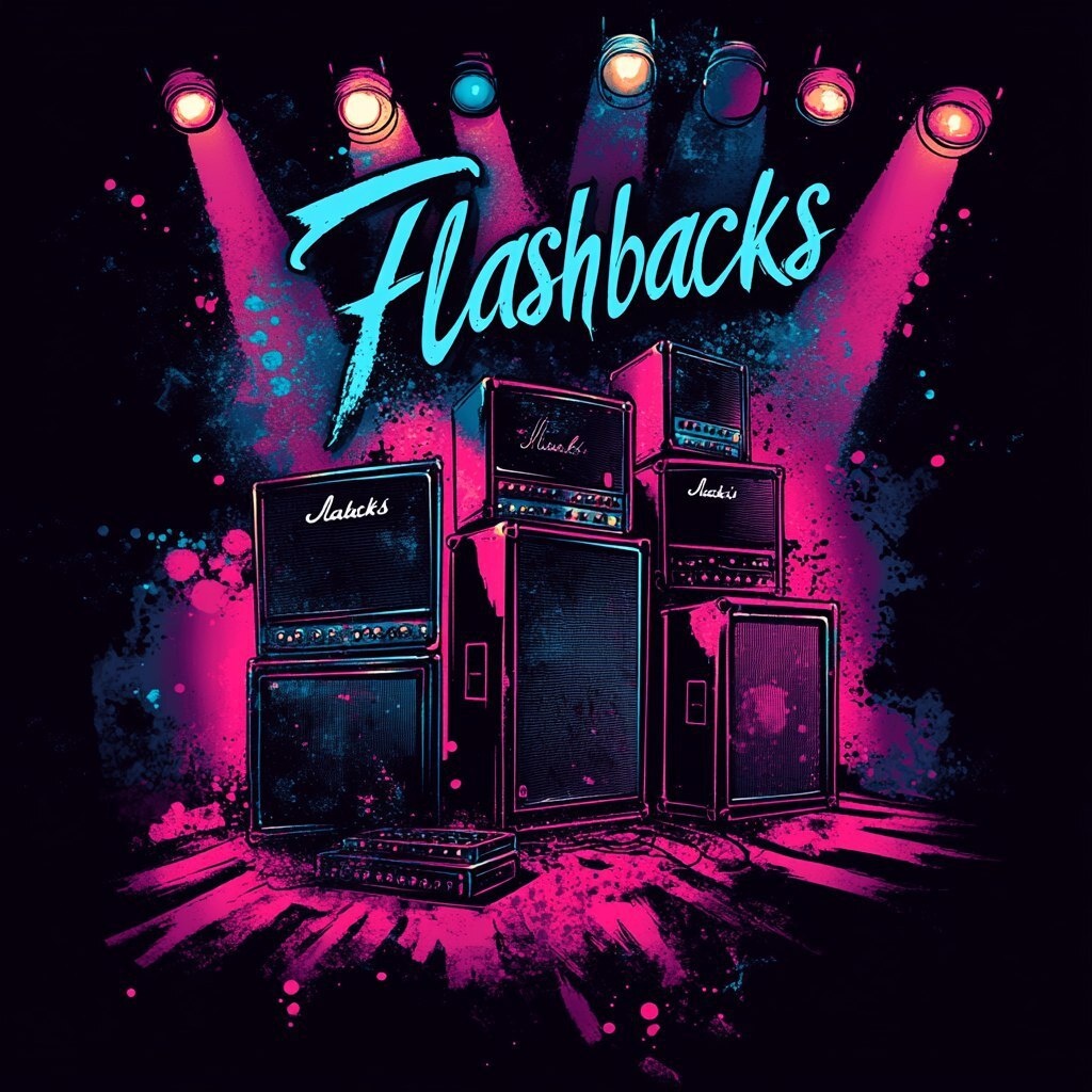 Создано на основе запроса: logo "Flashbacks " for a music page with amps and stage lights