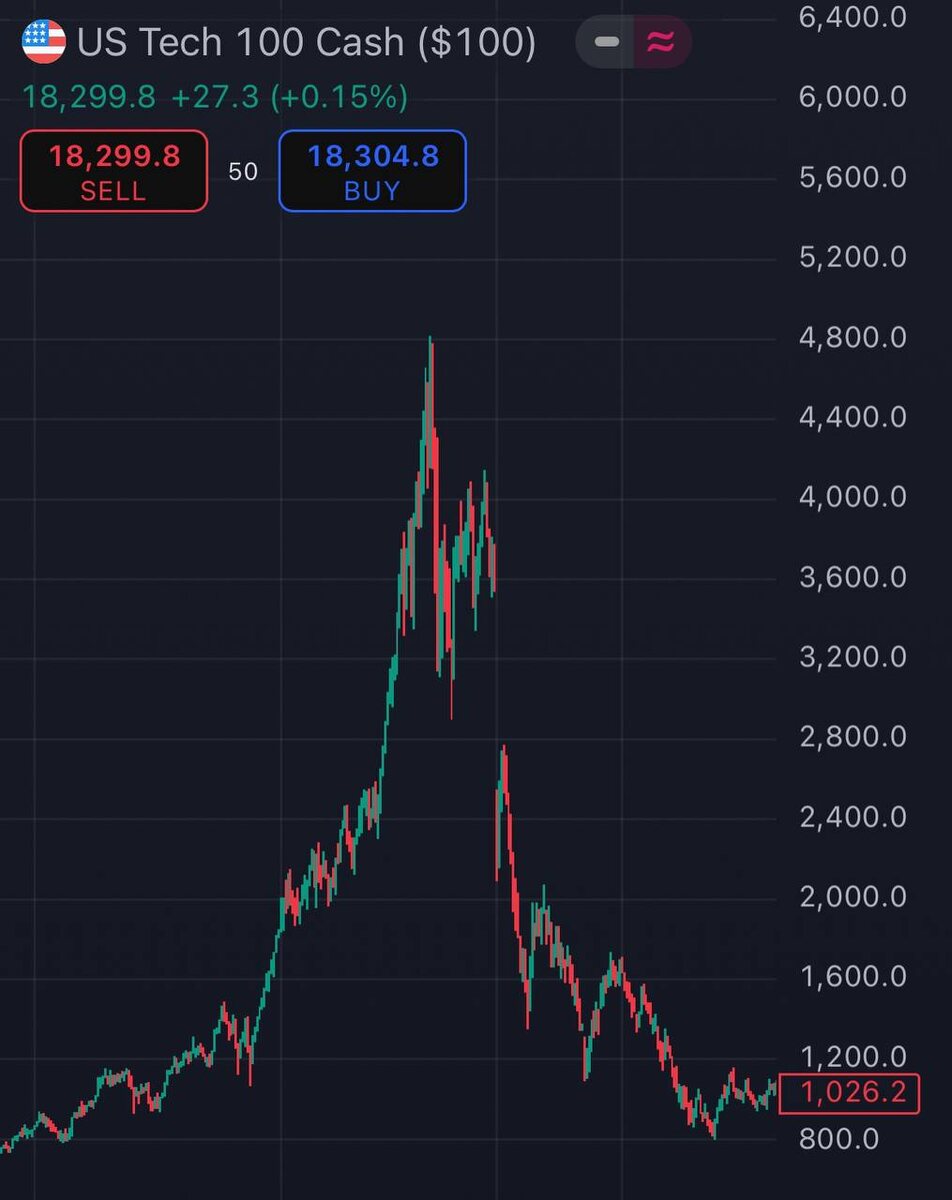 Пик, который не вернулся. История доткомов. Год — 2000. Мир в эйфории. Интернет — это будущее. У каждой компании в названии .com. Amazon, Yahoo, Pets.com, eToys, Webvan… Любая бумага с сайтом — удваивается, утраивается, улетает в космос. “Скоро не будет магазинов! Всё станет онлайн! Мы будем миллиардерами!” И вот — март 2000 года. NASDAQ достигает 5048 пунктов. Капитализация надута до небес. IPO выходит по 20 — закрывается по 200. И снова — тишина. Никто не кричит. Все ждут. Уже не радуются — считают прибыли. Пытаются докупать на последних свечах. Но в стакане… пусто. Первые продажи. — “Ну просто фиксация прибыли”. — “Скоро восстановится”. Но не восстановилось. NASDAQ падает на 80%. Восемьдесят. Процентов. С 5000 до 1000 с лишним. Многие компании не пережили падение. Кто-то сгорел за месяц. Кто-то — за год. Но всё это было одно и то же: Толпа, эмоции, спекуляции и забвение. И да — NASDAQ вернулся на пик только через 15 лет. Пятнадцать. Вы не ошиблись. Что это было? Всё тот ж