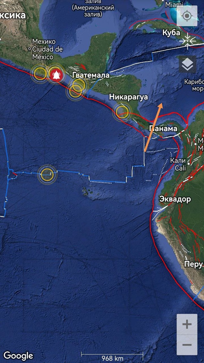 В ответ на пост Плиту Кокос, похоже, завернуло против часовой стрелки. Часть ОСТИ уехала через Панаму на Карибскую плиту. Также трассируется рифтовая зона к югу от Панамы. В этой связи больше всего может достаться Эквадору и Панаме... P.S. В сумме картина тянет на М7+ === The Cocos Plate seems to have turned counterclockwise. Part of the CSTI went through Panama to the Caribbean Plate. The rift zone south of Panama is also being traced. In this regard, Ecuador and Panama may get the most...