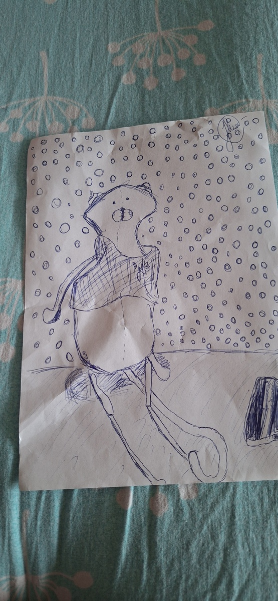 Привет! Сейчас я хочу написать полноценную статью. Это портрет моего плюшевого кота Мишеля. Я его нашла на ночёвке в доме у бабули. Нарисован где-то летом 2024 года. Но я не хочу наполнять мой канал архаичным барахлом. Так вот. Я расскажу историю этого котика. Мне его подарили на 10 лет. Изначально я хотела назвать его Мишелем (только ударение на первый слог), затем Силком, затем ещё как-то на Ш...кажется, Шейком. Я даже хотела написать о нём сказочную повесть, но поняла, что не смогу собрать силы для этого, ведь я не освоила писательского мастерства и не могла придумать сюжет. Но потом я вернулась к первому варианту, но только МишЕль. В первые дни я его кормила мармеладом, даже будильники себе ставила. Затем я забыла о корме и решила, что Мишель ничего не ест. Я боялась его забыть, и всякий раз, когда на него падал мой взгляд, я его всегда брала с собой. Когда я его забывала где-нибудь дома, это было трагедией, ведь он был как настоящий питомец. Чтобы как-то уделить ему внимание, я с
