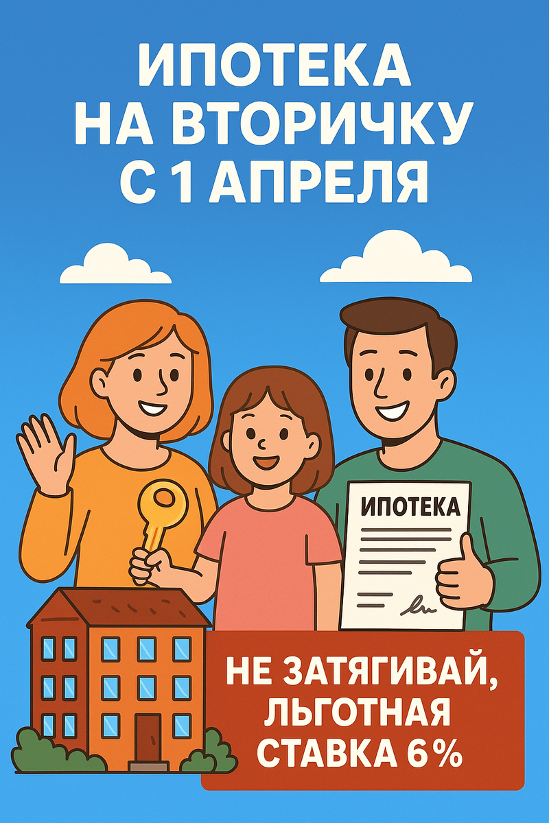С 1 апреля 2025 года в России стартовало то, чего ждали многие семьи с детьми и риэлторы с калькуляторами наготове — льготная ипотека на вторичное жильё. Нет, это не первоапрельская шутка, хотя дата вызывает подозрения. Это вполне серьёзный шаг со стороны государства: программа «Семейная ипотека» под 6% теперь распространяется не только на новостройки, но и на «вторичку». И если вы думаете, что это что-то скучное и не для вас — то пристегнитесь, потому что сейчас будет немного юмора, фактов, и мощный толчок к действию. До сих пор льготную ставку 6% можно было получить только при покупке жилья в новостройке. То есть — стройся, жди, плати, а потом ещё жди, пока дом получит прописку в реальности. Но с 1 апреля правила игры изменились — теперь в 901 городе страны, где строят всего пару домов в год, можно купить готовую квартиру во вторичке под те же 6%. Естественно, не всё так просто: Теперь внимательно, потому что вот тут начнётся движуха: ✅ Выбор расширяется — теперь семья может смотреть