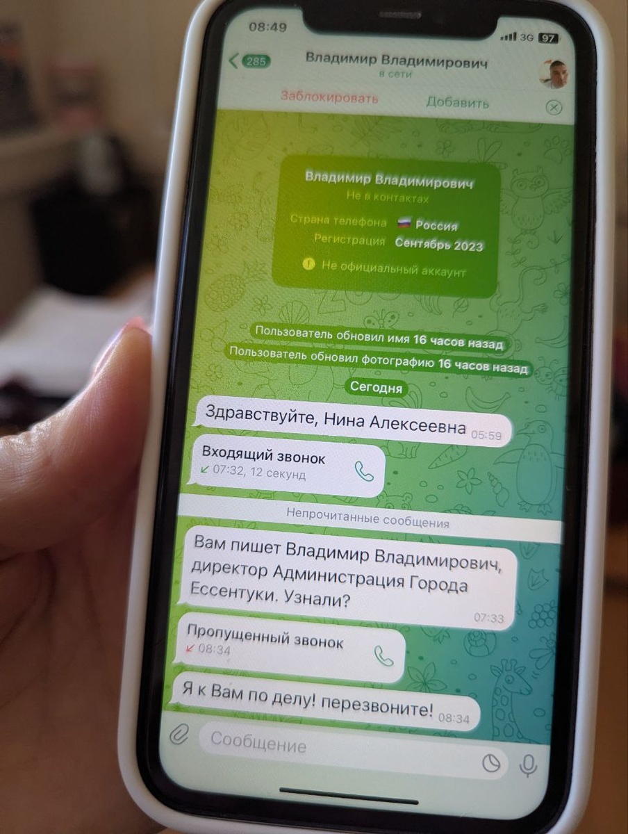 ⏺Глава города-курорта Ессентуки Владимир Крутников поделился перепиской своего подчиненного с мошенником, который пытался выдать себя за