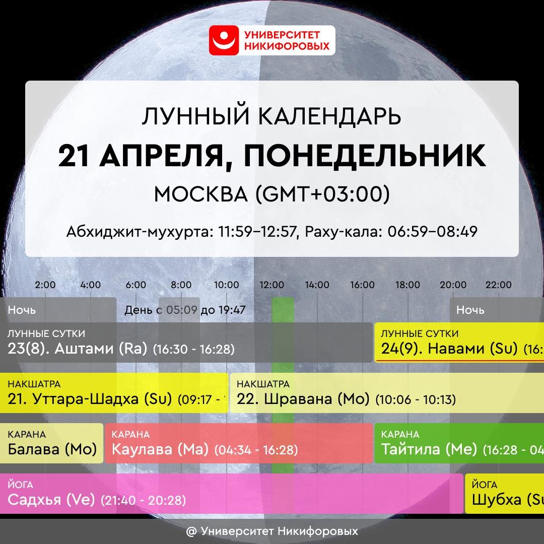 21 АПРЕЛЯ, ПОНЕДЕЛЬНИК До 16:28 энергетика дня благоприятная, она способна дать поддержку новым начинаниям и приобретениям. До 10:06 в ней преобладает устойчивость, которая содействует общению с авторитетами, общественным и юридическим делам, решению бизнес вопросов. После 10:06 – хорошее время для организационной и консультационной деятельности. Можно услышать важные слова, получить подсказку от Вселенной: сформулируйте мысленно свой вопрос пространству и ждите ответа. Это своеобразная медитация, призванная для того, чтобы развить нашу наблюдательность и восприимчивость. Время после 16:28 уже не способствует конструктивным и созидательным делам, оно предназначено для очищения и избавления от ненужного. Наведите порядок в Северо-Западном секторе жилья, осмотрите критическим взглядом вещи, которые там находятся – возможно настало время от чего-то избавиться. Проведите очищение пространства первоэлементом Воды, если знаете, как это делать. Влажная уборка также будет весьма уместной. Б