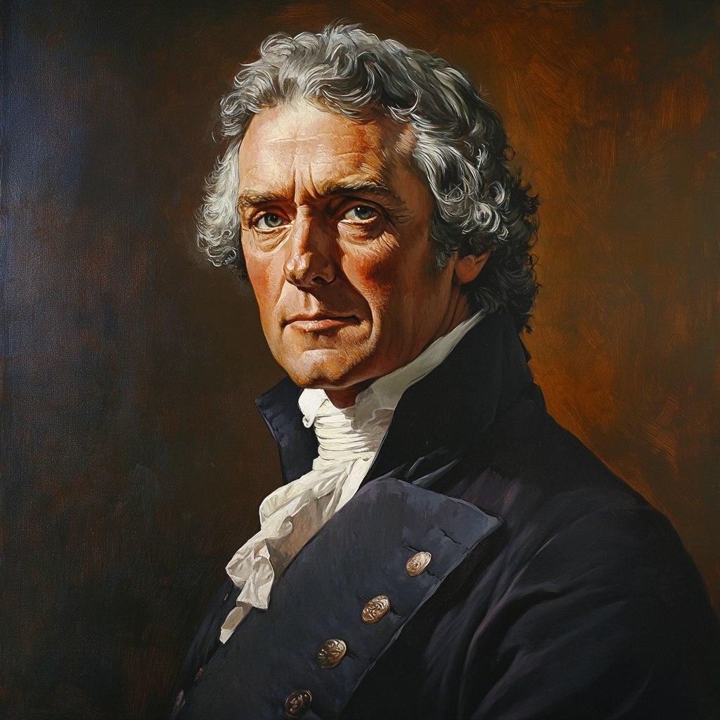 Создано на основе запроса: A realistic historical oil painting of Thomas Jefferson, warm lighting, 18th-century American style, serious