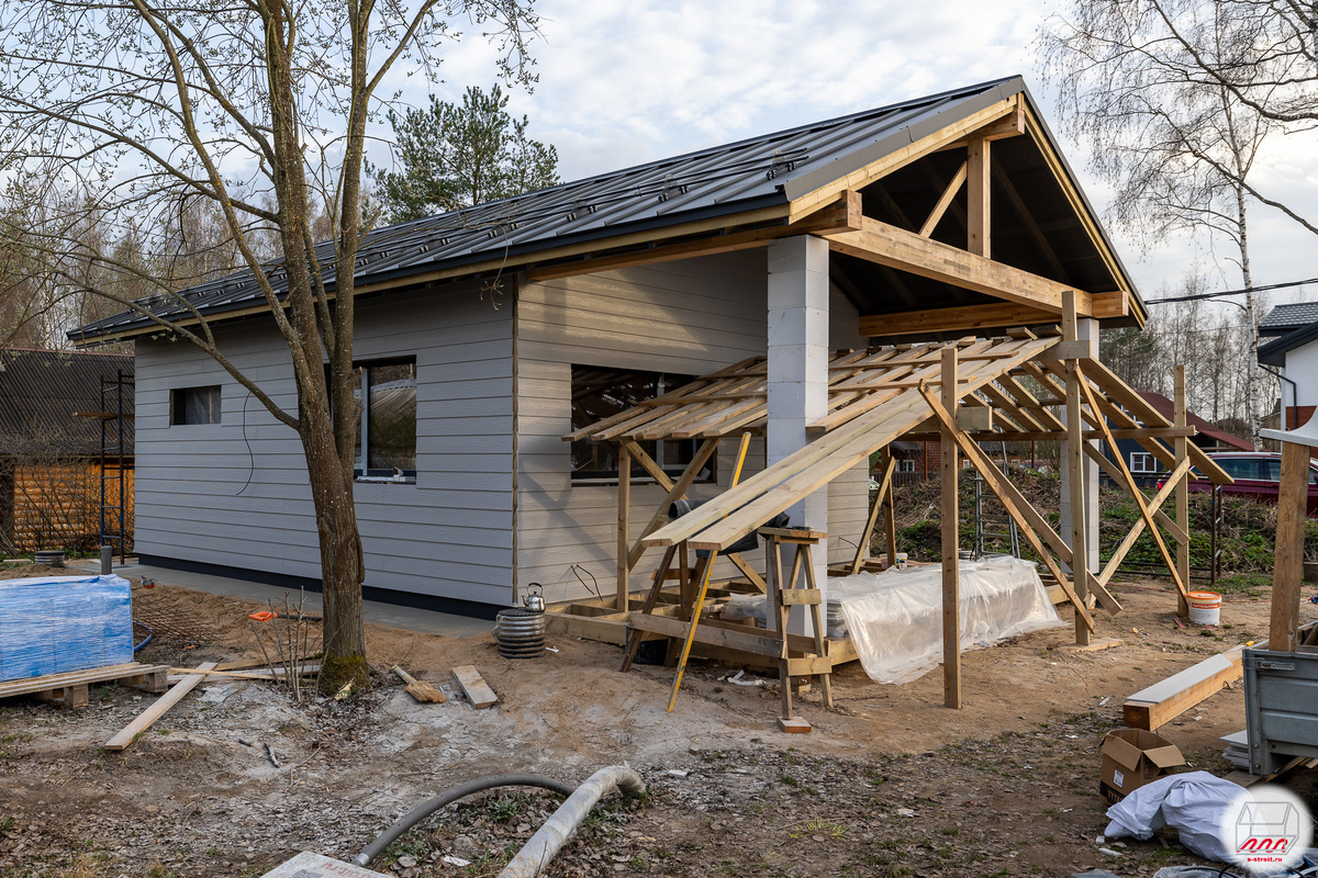 Почему-то осенью не получилось заехать сфотографировать готовую коробку, так что кровлю посмотрим уже сейчас: