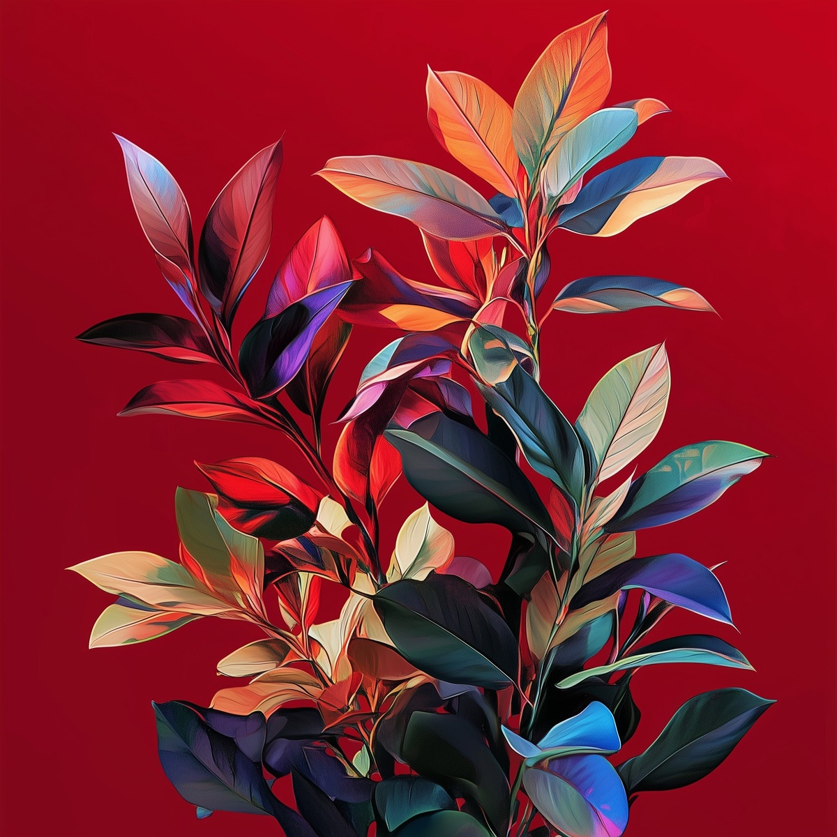 Создано на основе запроса: red background, plants in this style