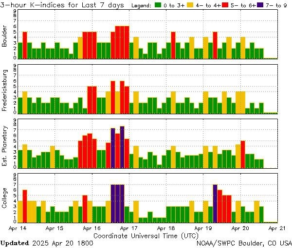 В ответ на пост В сейсмические планы вмешалась магнитная буря от 19 апреля (фото 1), поэтому с 48 часами, скорее всего, не получится в этот раз. А вот высокочастотный треск возобновился сегодня (фото 2), поэтому сильное землетрясение в течение пары суток всё еще вероятно. С завтрашнего дня последуют несколько потенциально сейсмоэффективных межпланетных конфигураций (фото 3 от SSGEOS), так что ждем...