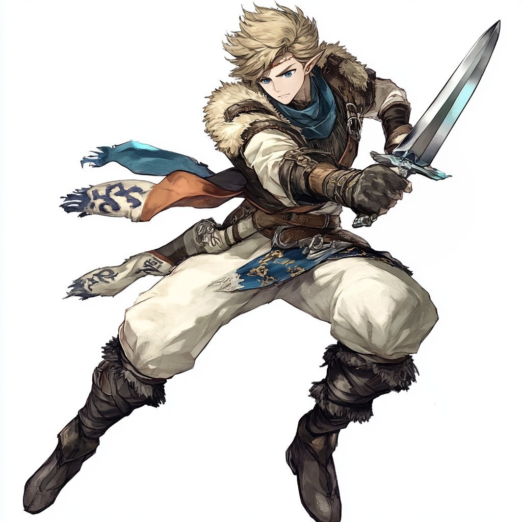 Создано на основе запроса: Fantasy concept illustration, Male, Elf, Thief-Warrior, Golden blonde hair, Short short beard, Sky blue eyes, Dagger, Carefree, Strong, Light leather armour, Celtic-Norse style, White background, High quality, Exaggerated fighting pose --- Автоперевод: Фэнтезийная концепция иллюстрация, мужчина, эльф, вор-воротный, золотисто-светлые волосы, короткая борода, небо голубые глаза, кинжал, беззаботная, сильная, легкая кожаная броня, стиль кельтского происхождения, белый фон, высокое качество, преувеличенная боевая поза Неплохо вышло? 🤔 https://dzen.ru/id/65c0c65c86e4f837c27b24d7 #ИИ #AI #нейросеть #midjourney #art