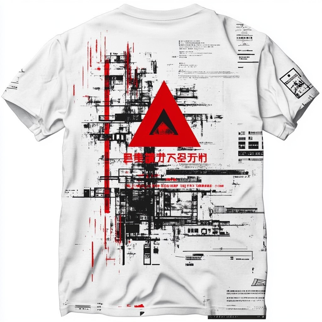 Создано на основе запроса: cyberpunk system override warning label, glitch text with red triangle alert icon, Japanese and English mixed, simple monochrome and red layout, made for back of white tee --- Автоперевод: Предупреждающая этикетка переопределения системы Cyberpunk, текст глюка с иконой оповещения с красным треугольником, японской и английской смешанной, простой монохром Неплохо выглядит? 🤔 https://dzen.ru/id/65c0c65c86e4f837c27b24d7 #ИИ #AI #нейросеть #midjourney #art