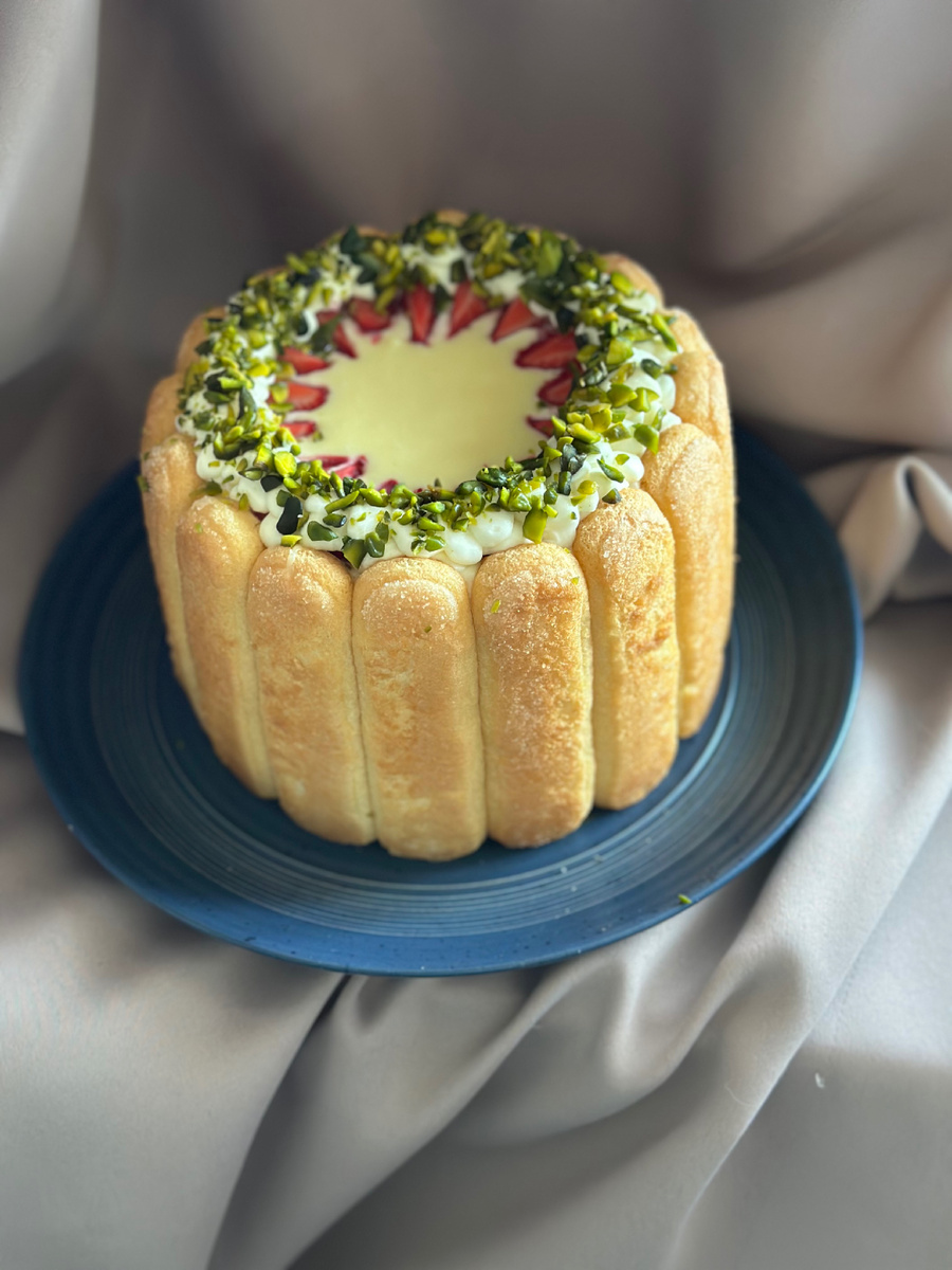 Года полтора в архиве с просторов интернета отлёживался рецепт этого изумительного торта. Наконец-то созрела до него. По принципу тирамису, но не он. Я не люблю, кстати его… У меня форма: 16 см. диаметр и высота 12 см. Выходит как раз на этот рецепт под «потолок». Устанавливаем кольцо на тарелку. Обмакиваем каждое печенье в молоке. Долго не держим. Именно обмакиваем. И устанавливаем печенье по бортам формы, затем устилаем дно. Готовим кремовую массу. Складываем в дежу миксера - творожный сыр, загуститель для сливок, щепоточка соли, ванилин. Взбиваем на средней скорости 1-1,5 мин. Добавляем сливки и взбиваем ещё пару минут до устойчивых пиков. Выкладываем половину массы. Режем мелко клубнику. Распределяем её по массе. Немного поливаем её ганашем. Ганаш можно сделать перед началом приготовления торта, чтобы он немного уже загустел. Для этого нагреваем до горячего состояния сливки (Не кипятим!) и добавляем шоколад. Перемешиваем до полного его растворения и объединения в общую масс