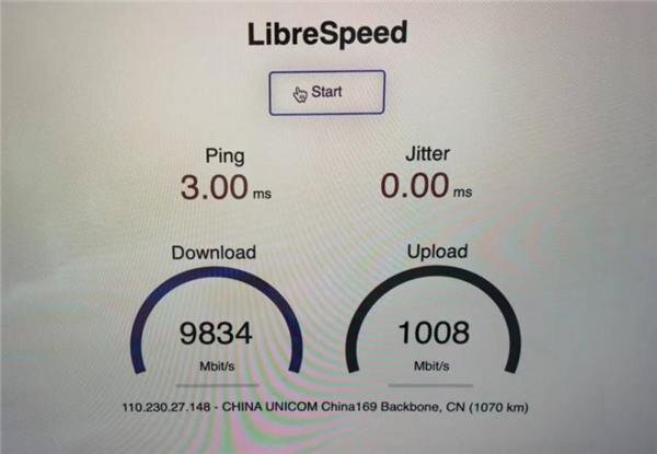 Китайцы врубили 10G — скорость загрузки 9834 Мбит/с, отдача — 1008, пинг — 3 мс