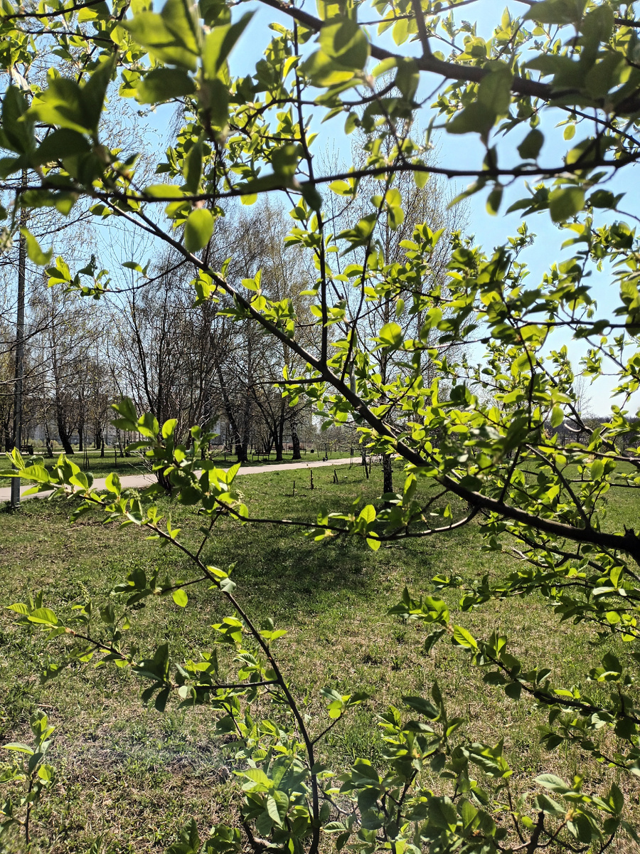 Уже и сережки на березах распустились. Молоденькие листики появились. "Кокетничают" с прохожими.