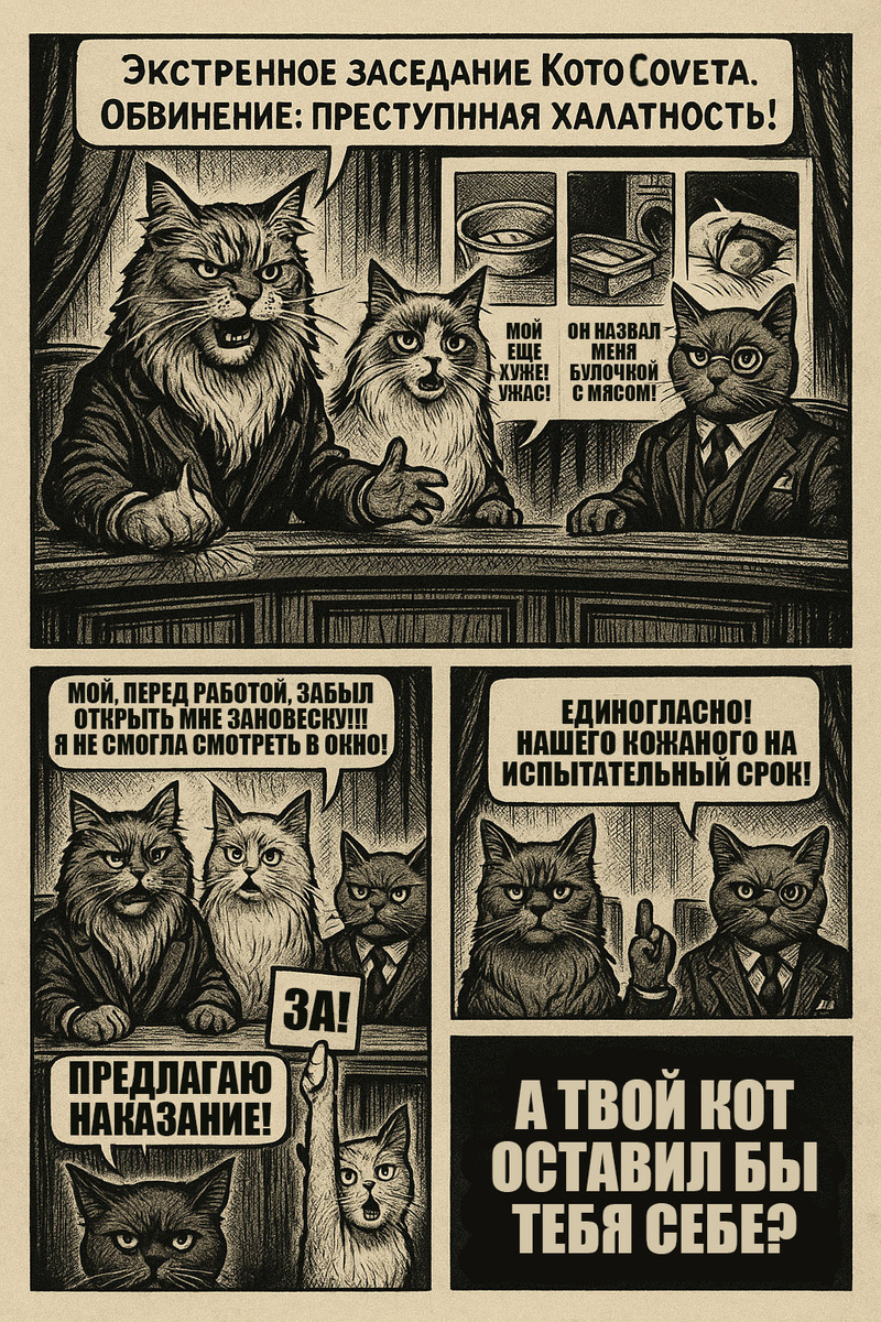 Сегодня состоялось экстренное заседание КотоСовета, и причина веская: вы — люди — совсем обнаглели. Нюша (рэгдолл, ответственная за нюансы):