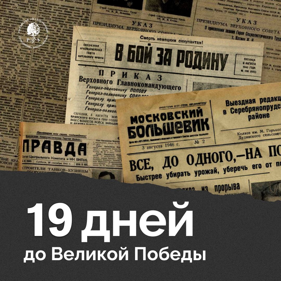 ▎ 19 дней до Великой Победы ⬆️ О том, что было 20 апреля в годы Великой Отечественной войны, читайте в карточках. ⚪ Подписаться на РГГУ #РГГУ #100ДнейДоВеликойПобеды #ДеньПобеды #ВОВ #ВеликаяОтечественная #История #80летПобеды #НаучныйПолк #НаучныйПолк2025