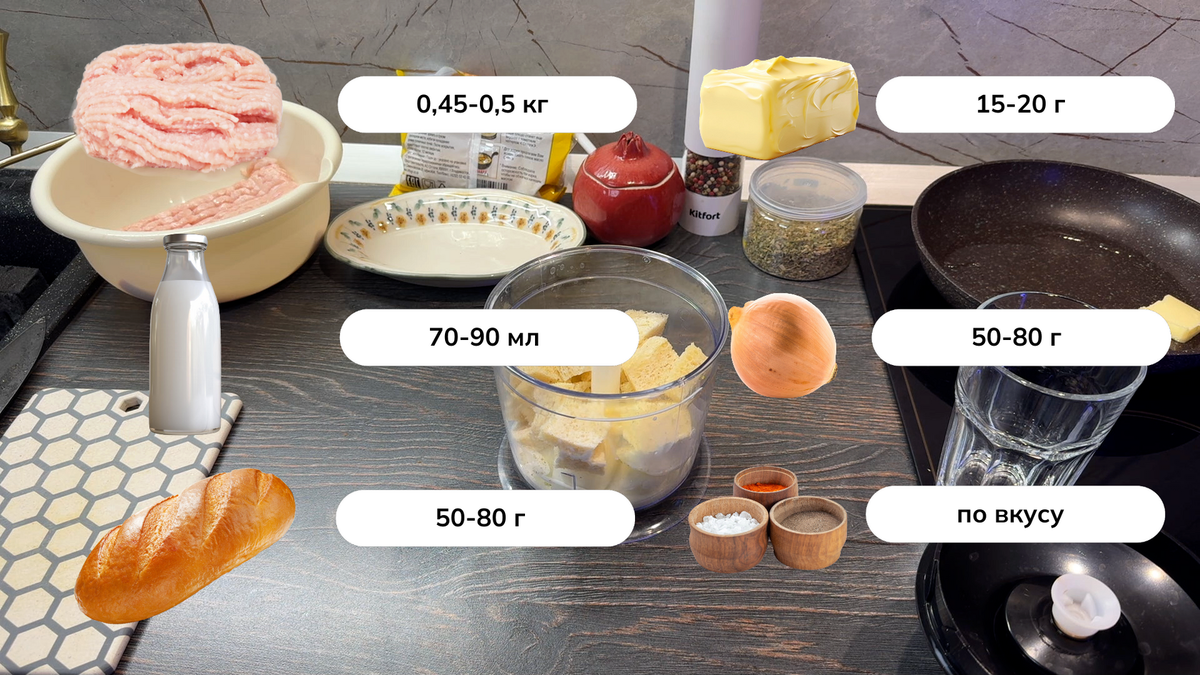 Добро пожаловать на Бивак! Сегодня мы приготовим классические советские котлеты с небольшими современными бустами. Они получатся вкусными, сочными и очень аппетитными! Ингредиенты: 0,45-0,5 кг куриного фарша 70-90 мл молока 50-80 г белого хлеба или батона (без корок) 1 большая луковица (50-80 г) 50 г сливочного масла 50-80 мл растительного масла Соль, перец, специи по вкусу (можно использовать прованские или итальянские травы) Сухари панко для обсыпки (по желанию) Дополнительно: обжаренные грибы, сыр, майонез, помидоры или другие любимые добавки Пошаговый рецепт куриных котлет: Подготовка хлеба: Срежьте корки с белого хлеба или батона и замочите мякиш в молоке на 20-30 минут. Это поможет сделать котлеты более сочными. Если у вас есть блендер, можно просто объединить хлеб с луком и остальными ингредиентами. Измельчение лука: Мелко нарежьте лук или измельчите его в блендере. Это залог нежной текстуры котлет. Смешивание ингредиентов: В глубокой миске соедините куриный фарш, замоченный