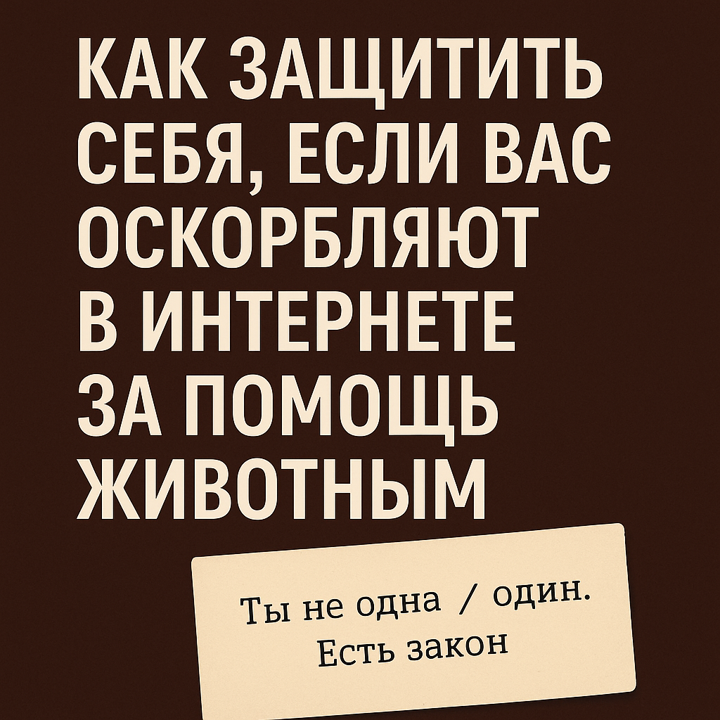“Всех собак в утиль — и тебя туда же.” Если вы хоть раз писали в защиту бездомных животных, поддерживали волонтёров или публиковали обращения по статье 245 УК РФ — скорее всего, в комментах вам уже ставили диагноз. Оскорбления стали частью публичной активности. Но хорошая новость: это не норма, это нарушение закона. И с этим можно — и нужно — работать. Закон не делает скидку на то, что оскорбление прилетело в Telegram или под постом во ВКонтакте. Согласно статье 5.61 КоАП РФ, оскорбление — это: унижение чести и достоинства другого лица, выраженное в неприличной форме. А такие выражения, как “тупая зоошиза”, “тварь”, “тебя бы стерилизовать”, “иди лечись” — это не критика.