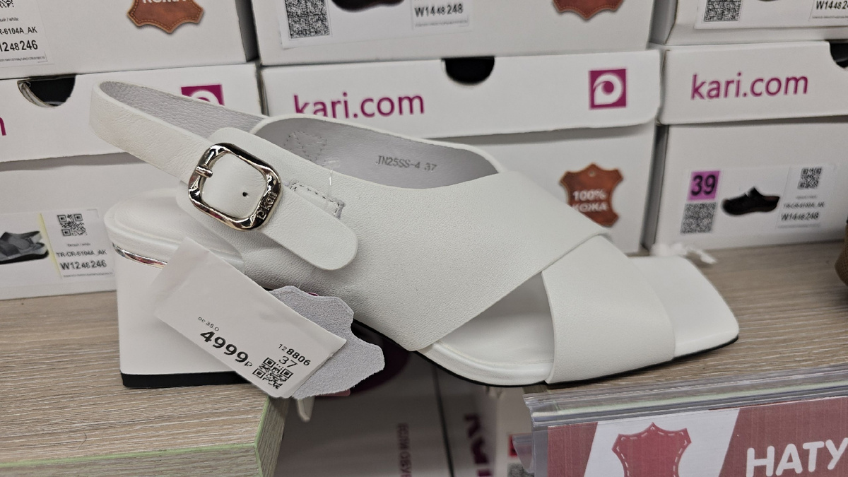 Красивая белая модель босоножек из натуральной кожи. Они действительно очень мягкие. Цена 4999 рублей.